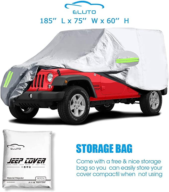 Jeep Wrangler Cover 4 Door Waterproof All Weather Upgrades Jeep Covers Waterproof Protection Outdoor Car Cover For Jeep With 2 Gust Straps Fits Up To 185 185 L X 75 W X 71 H Walmart Com